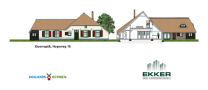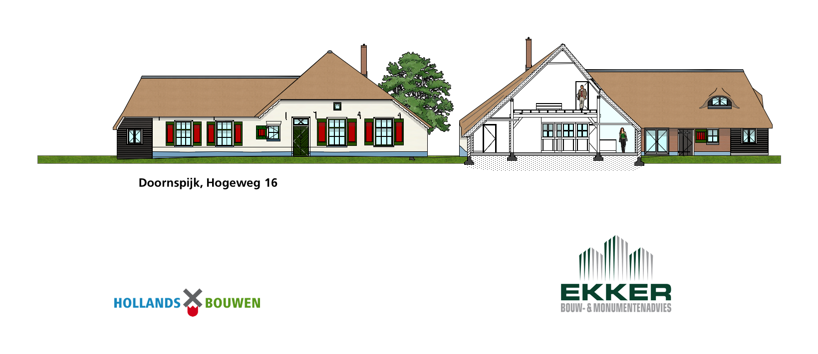Samenwerken aan planvorming, is voor Eelco Ekker de uitdaging! In Doornspijk staat aan de Oude Hogeweg 16, een van de oudste boerderijen van Elburg (1744). Vanuit de wens om het woongenot te vergroten hebben de huidige eigenaren Eelco Ekker benaderd voor het opstellen van een bouwplan. Aan de keukentafel is er een toekomstvisie ontstaan en zijn de wensen vertaald. Daarbij is doordacht gebruik gemaakt van het intact laten van de bestaande structuren. Hierdoor rendeert de voorgaande investering in de vorm van B&B- kamers en wordt de nieuwe wereld ingezet voor het vergoten van het wooncomfort. De monumentale onderdelen zoals de prachtige kapconstructie en het unieke gebintwerk, worden ingezet om de belevingswaarde te vergroten en het karakter te versterken.