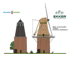 In 2008 was Fakkert nog een molenstomp! Niets meer dan een verlaten silo gebouw. De gemeente en de stichting wilden niets liever dan de molen weer terug zien. Er was behoefte aan een heldere visie, continuïteit en toekomstbestendigheid. Eelco Ekker stelde een toekomstvisie op en kreeg de opdracht om Fakkert weer in de benen te helpen. Na een intensieve voorstudie kon de restauratie van start. Het complexe restauratieproces begeleide Eelco Ekker van schets tot realisatie. Hij bewaakte de kwaliteit van zowel het detail als het geheel. Met als resultaat een zeer fraai gerestaureerde molen en een passende herinrichting van het molenerf. Geheel volgens de visie van Eelco Ekker, heeft Hoonhorst heeft niet alleen haar molen teruggekregen, maar ook haar stadsgezicht en haar sociale hart. “De molen, de boerderij en het café zijn weer verbonden”.