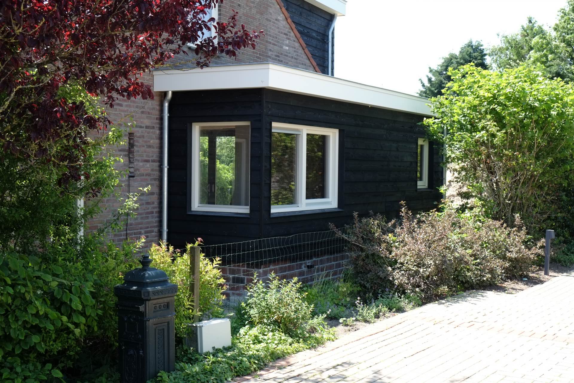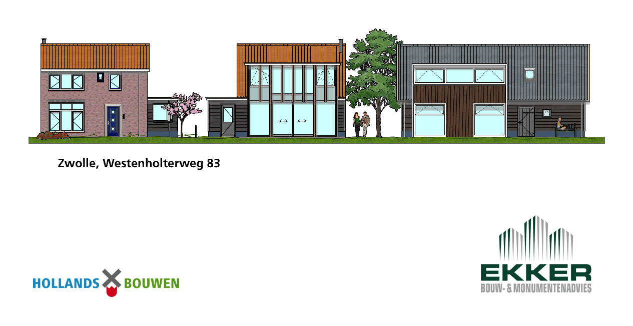 Vanwege de bedrijfsmatige mogelijkheden op het grote achterliggende perceel was dit aspect voor de ondernemende eigenaar de meerwaarde. Eelco Ekker heeft deze rechten verankerd in een integrale bouwaanvraag, waarbij de renovatie van het woonhuis de bedrijfsmatige kapschuur en bedrijfscarport zijn vergund.