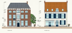 Voor dit majestueuze pand aan de Koestraat mochten wij een restauratieplan opstellen om het pand gereed te maken voor de toekomst. Vanaf de jaren ’50 was het pand in gebruik als dokterspraktijk- woonhuis. Het interieur was zeer gedateerd, installaties achterhaald en moest verwijderd worden. Daardoor konden we de rijke historie van het pand zien om vervolgens deze gegevens te analyseren en te verwerken in een bouwhistorisch onderzoek. Eelco Ekker heeft voor zijn opdrachtgever alle onderzoeken verricht. Een toekomstvisie geformuleerd en daar het ontwerp op gebaseerd, waarbij ook op het vlak van duurzaamheid het pand weer toekomstbestendig is. Ten behoeve van de bouwaanvraag- omgevingsvergunning de benodigde planstukken opgesteld en deze ingediend bij de gemeente. Van concept tot vergunningsverlening is de opdrachtgever begeleidt en ont-zorgt. De restauratie is momenteel in uitvoering.